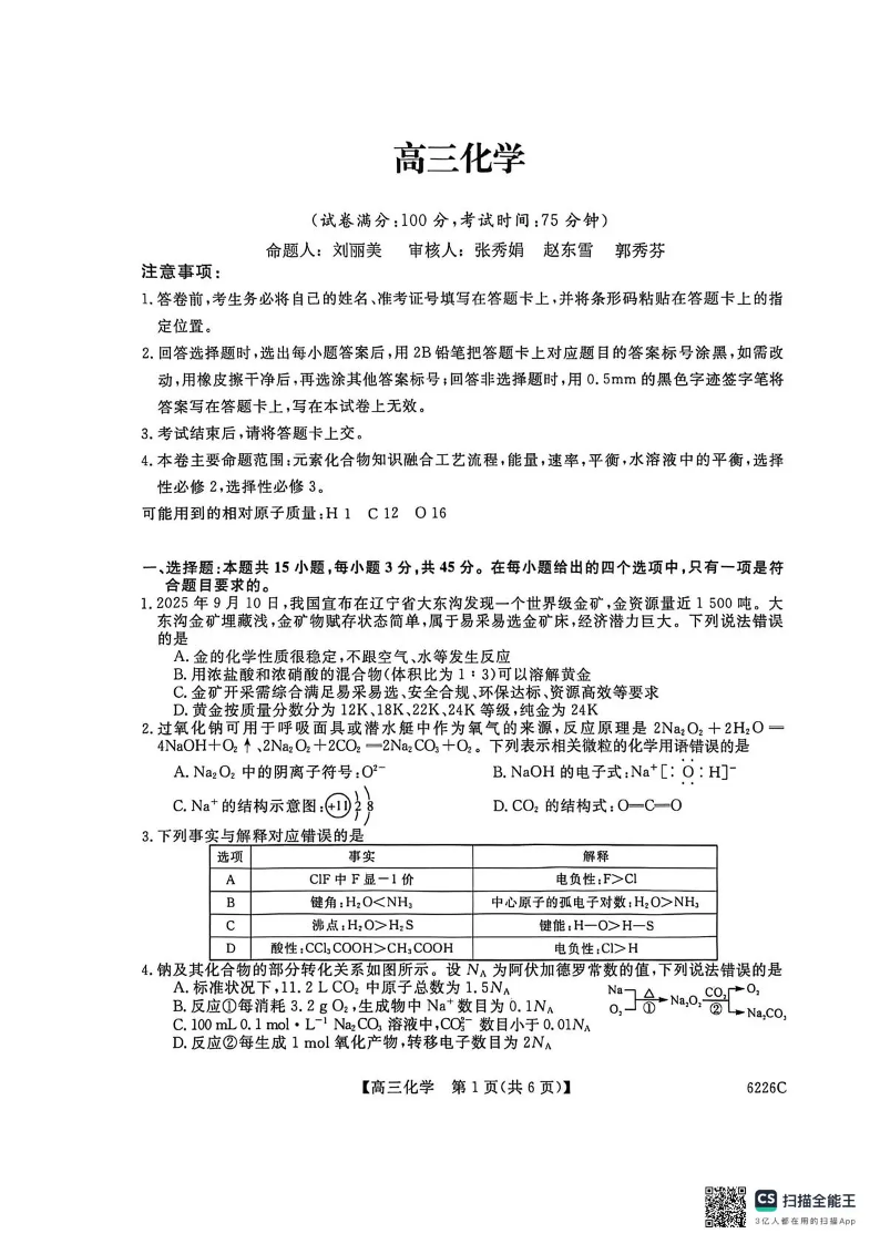 吉林省白山市2026届高三上学期一模考试 化学.pdf