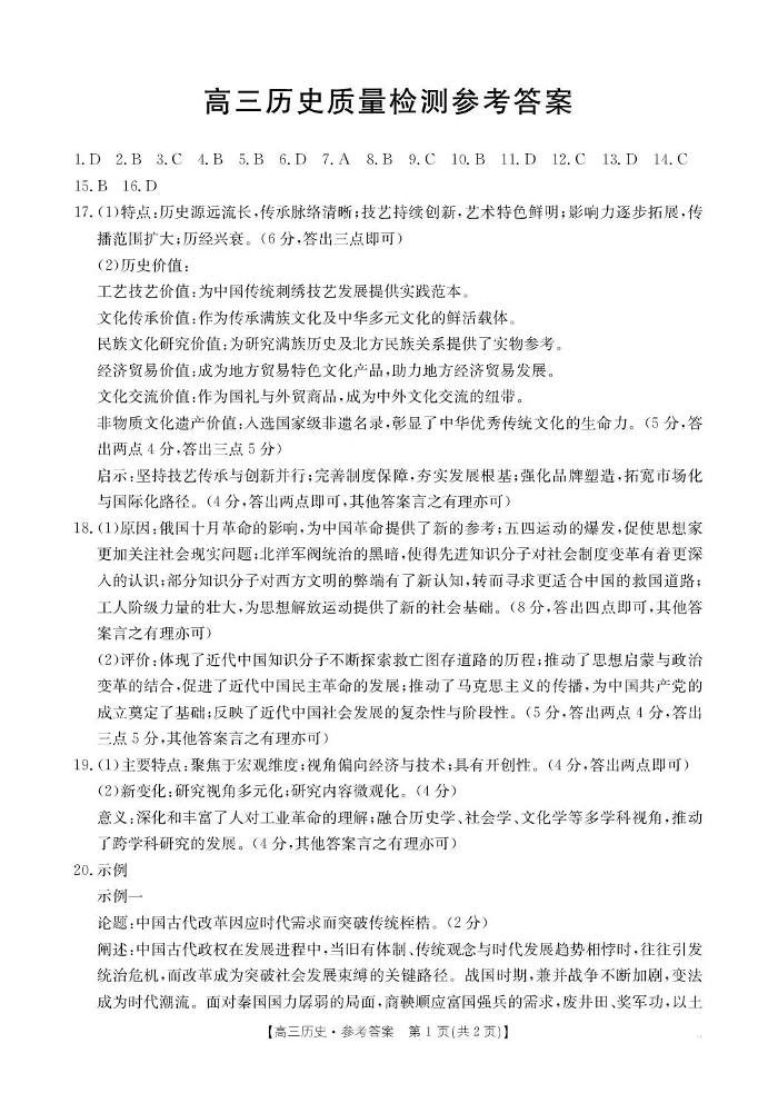 辽宁省辽阳市2026届高三上学期1月期末考试 历史答案.pdf