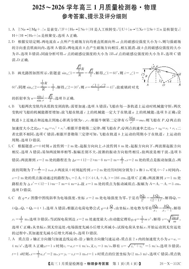 三晋卓越联盟2025~2026学年高三1月质量检测卷 物理答案.pdf