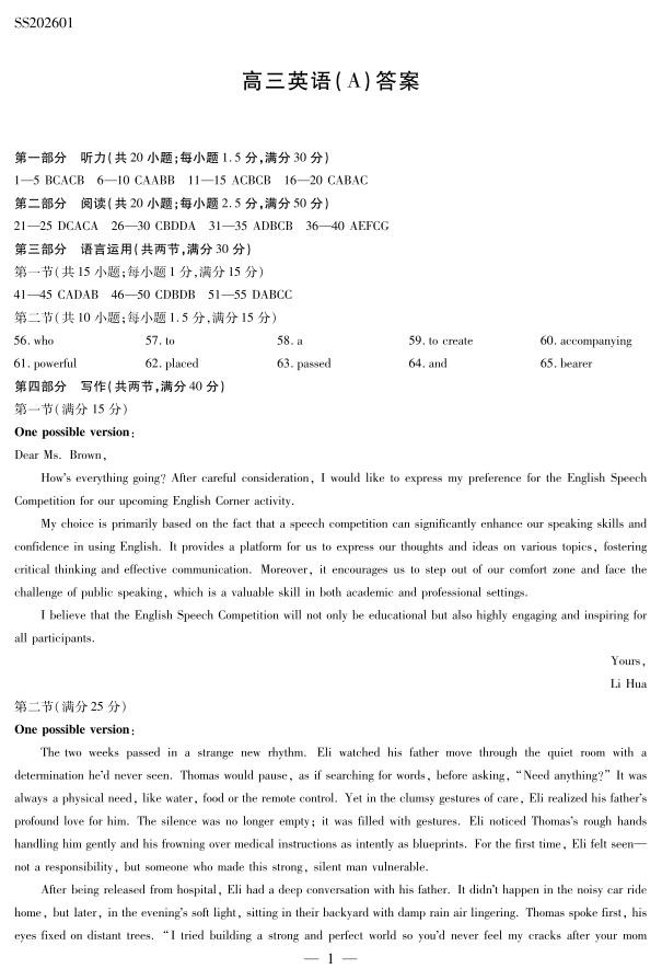 陕晋青宁四省2025-2026学年高三上学期(1月)第二次联考 英语答案.pdf