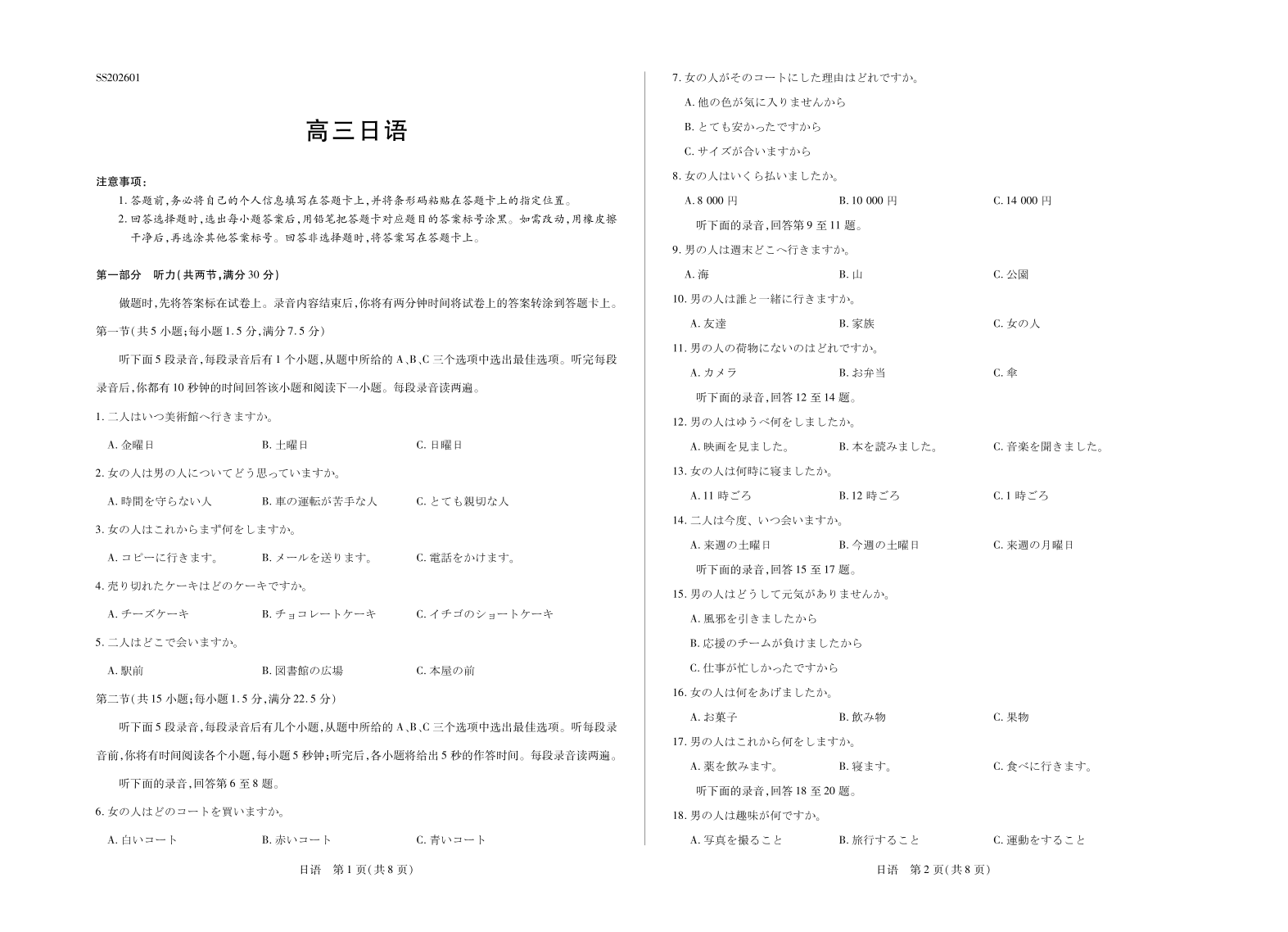 陕晋青宁四省2025-2026学年高三上学期(1月)第二次联考 日语.pdf