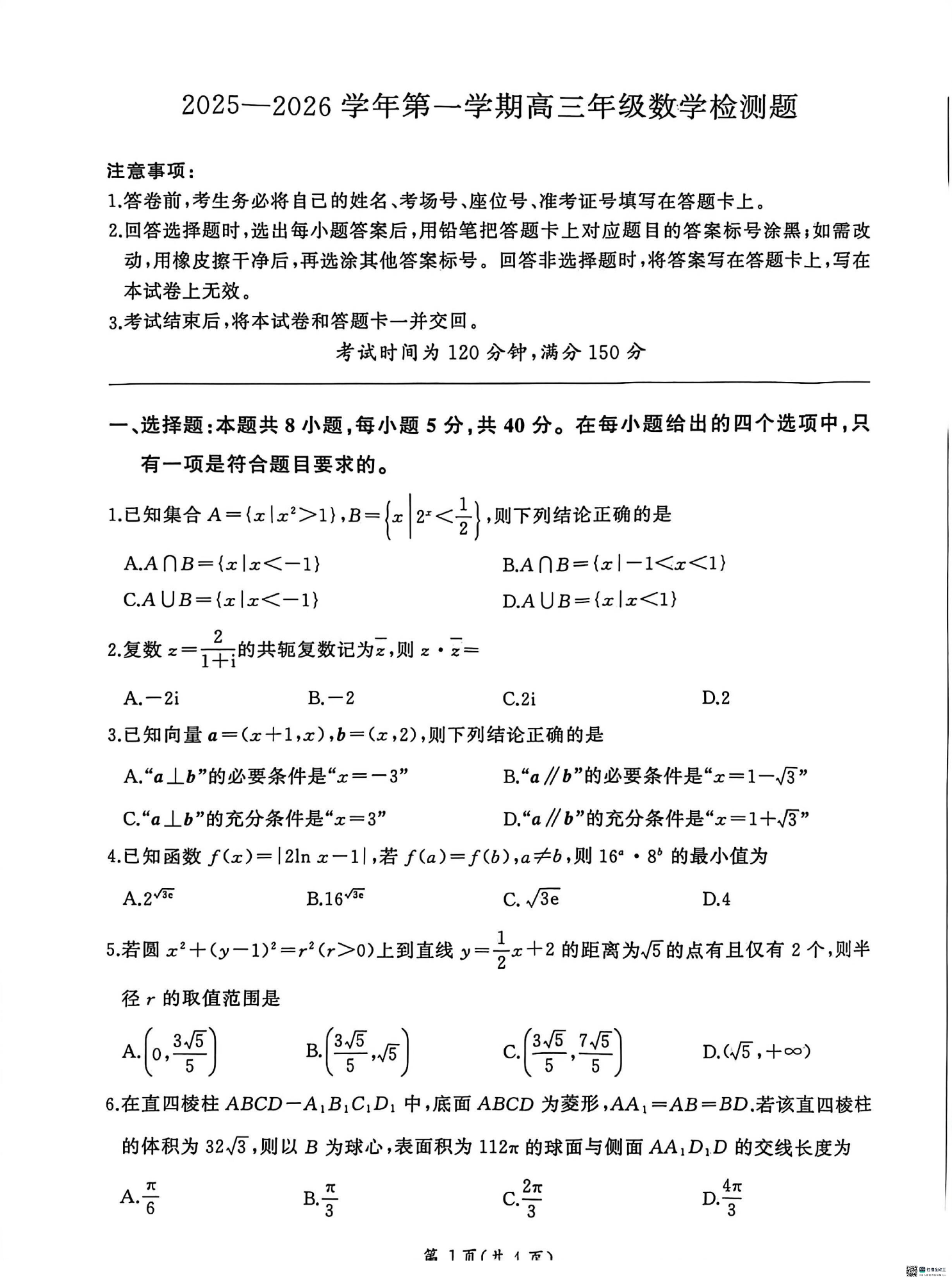 NT名校联合体2025-2026学年高三上学期1月月考 数学.pdf