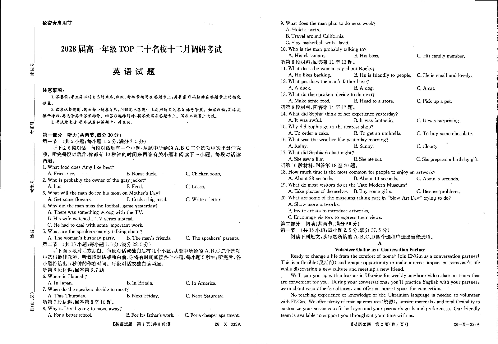 河南省TOP二十名校2025-2026学年高一上学期12月调研考试 英语试题(含答案).pdf