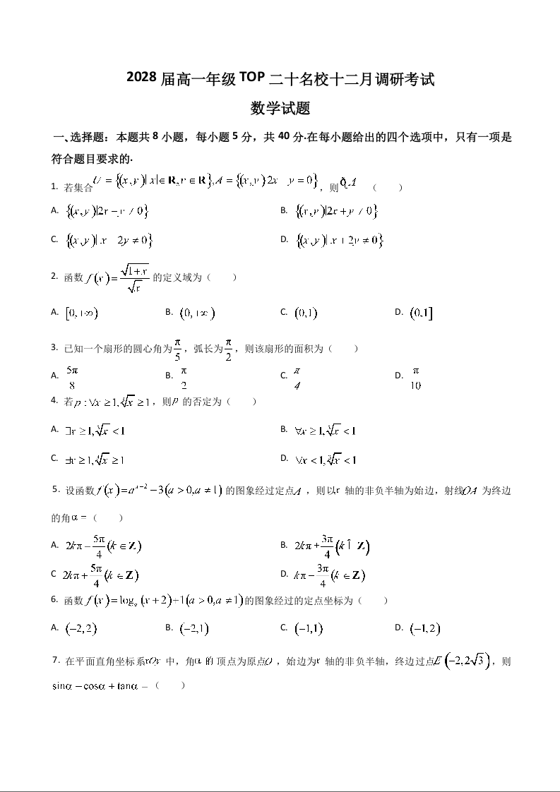 河南省TOP二十名校2025-2026学年高一上学期12月调研考试 数学试题(含答案).docx