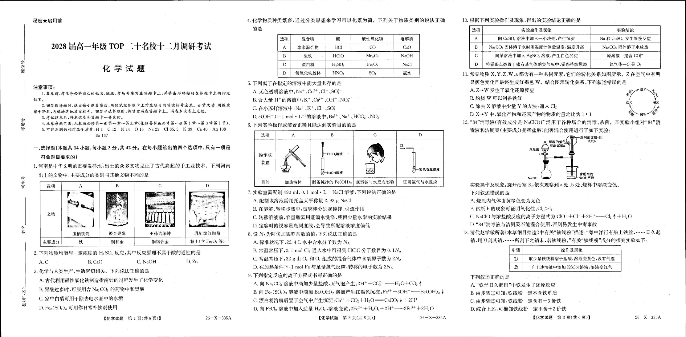河南省TOP二十名校2025-2026学年高一上学期12月调研考试 化学试题(含答案).pdf