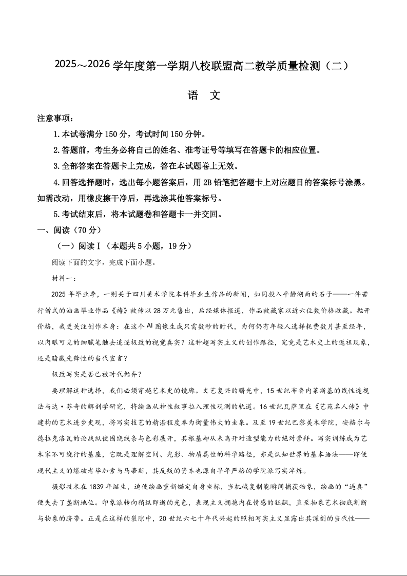 广东省八校联盟2025-2026学年高二上学期教学质量检测(二)语文试题(含答案).docx