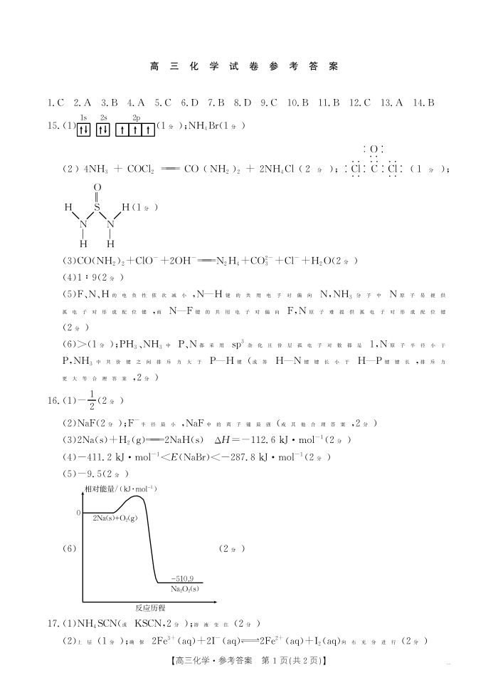 新疆2026届高三上学期12月联考 化学答案.pdf