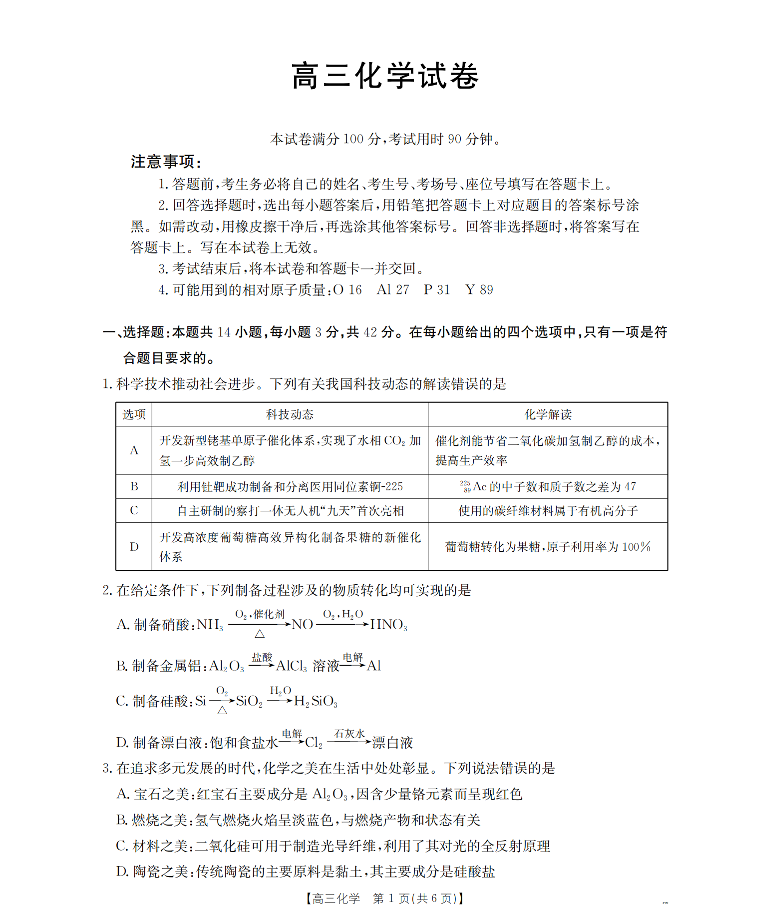 新疆2026届高三上学期12月联考 化学.pdf