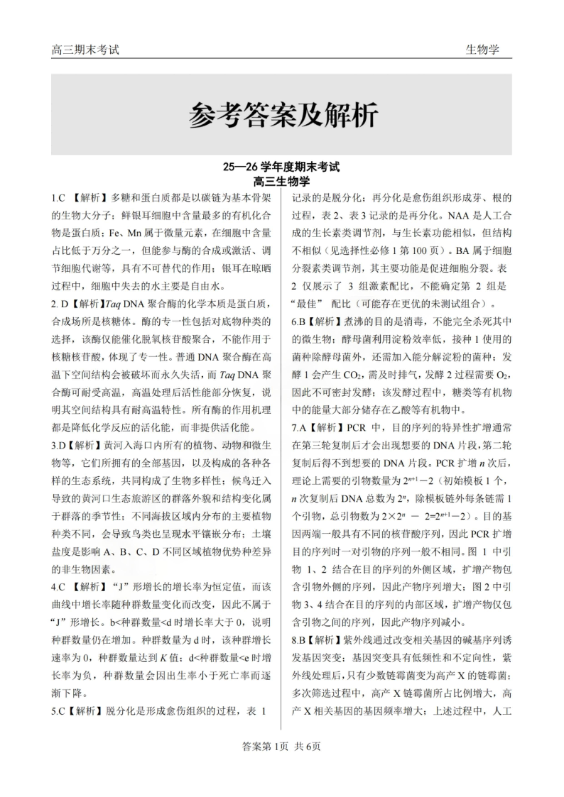 龙江教育联盟2026年1月高三上学期期末考试 生物答案.pdf