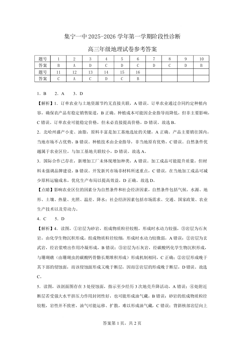 内蒙古集宁一中2025—2026学年第一学期高三年级阶段性诊断 地理答案.docx