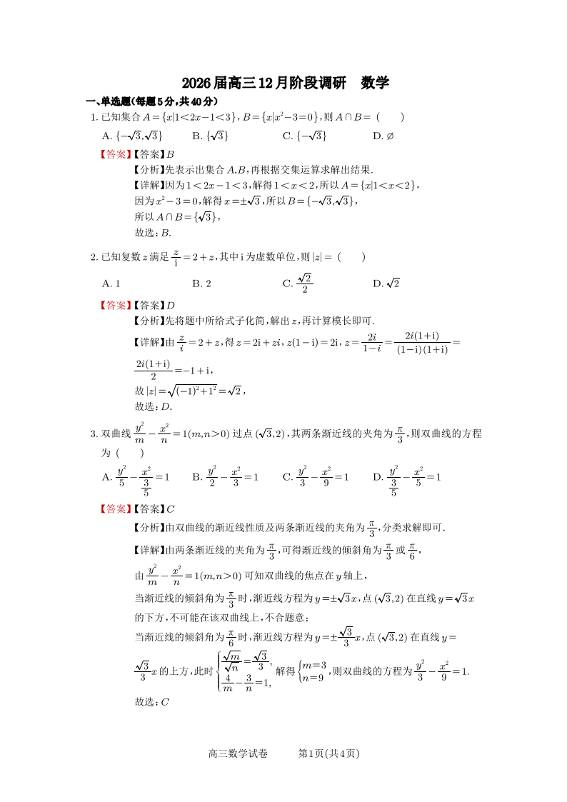 合肥市第一中学2025-2026学年高三上学期1月测试 数学答案.pdf