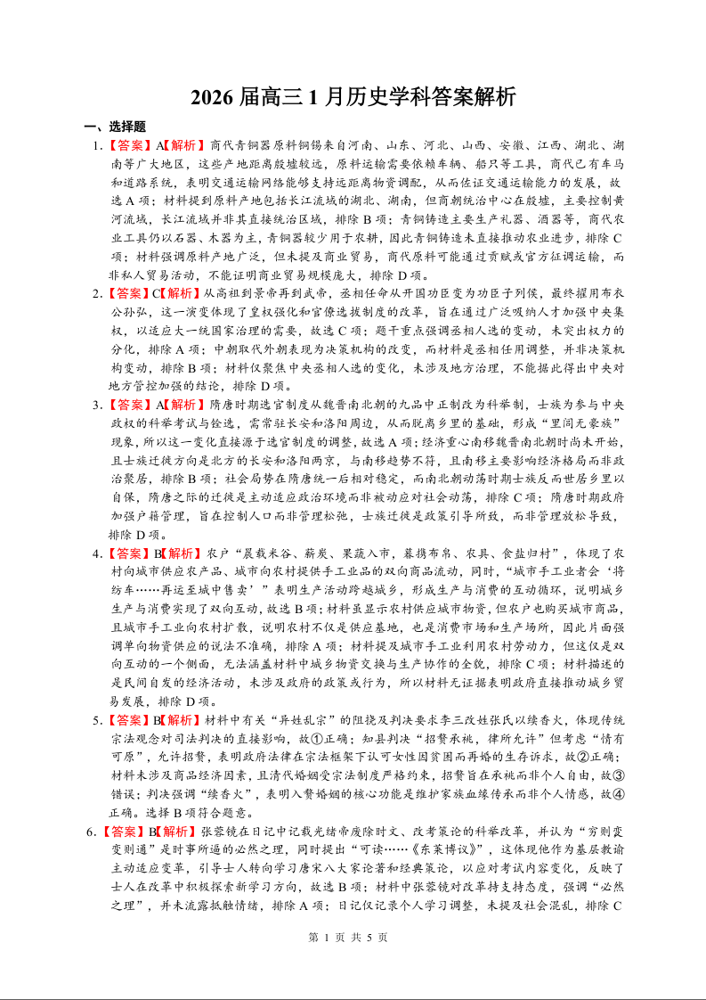 合肥市第一中学2025-2026学年高三上学期1月测试 历史答案.docx