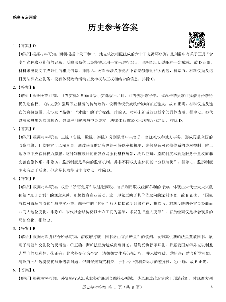 名校教研联盟2026届高三元月联考 历史参考答案.pdf