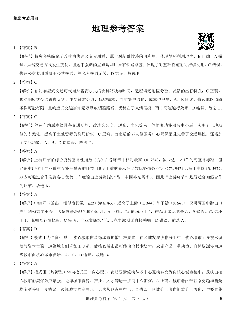 名校教研联盟2026届高三元月联考 地理参考答案.pdf