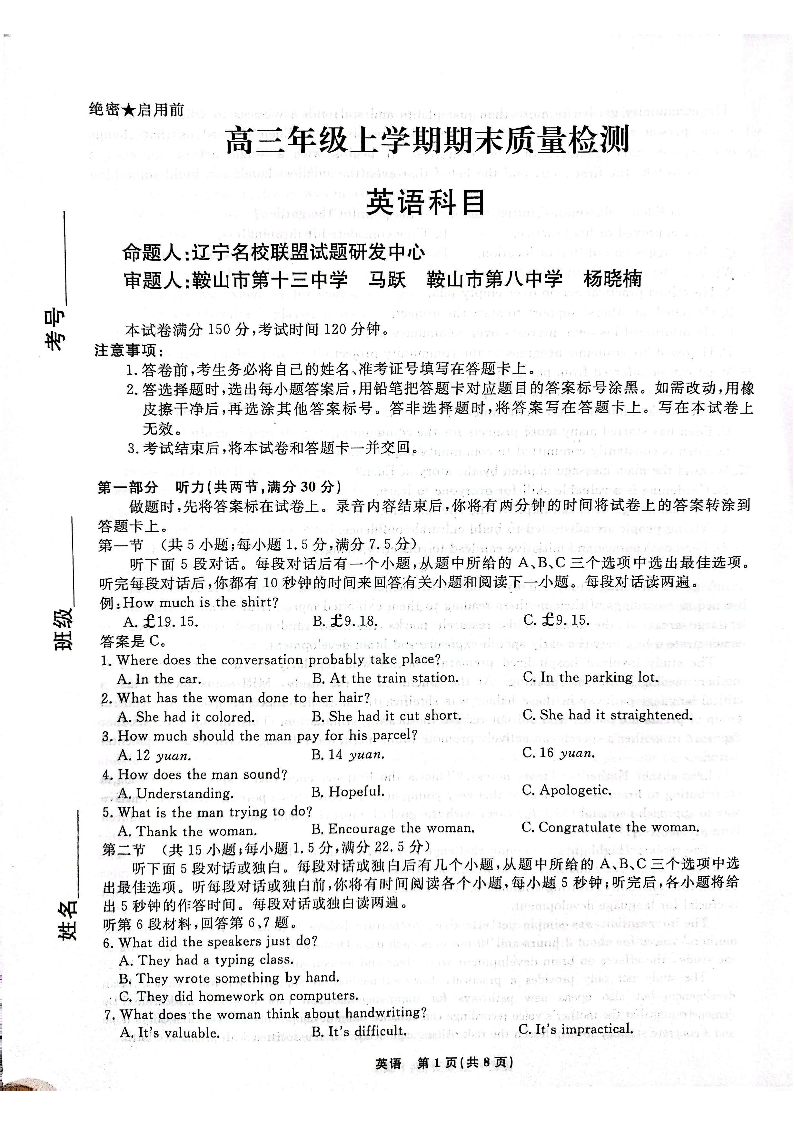 辽宁名校联盟2025-2026学年高三上学期1月期末考试 英语.pdf