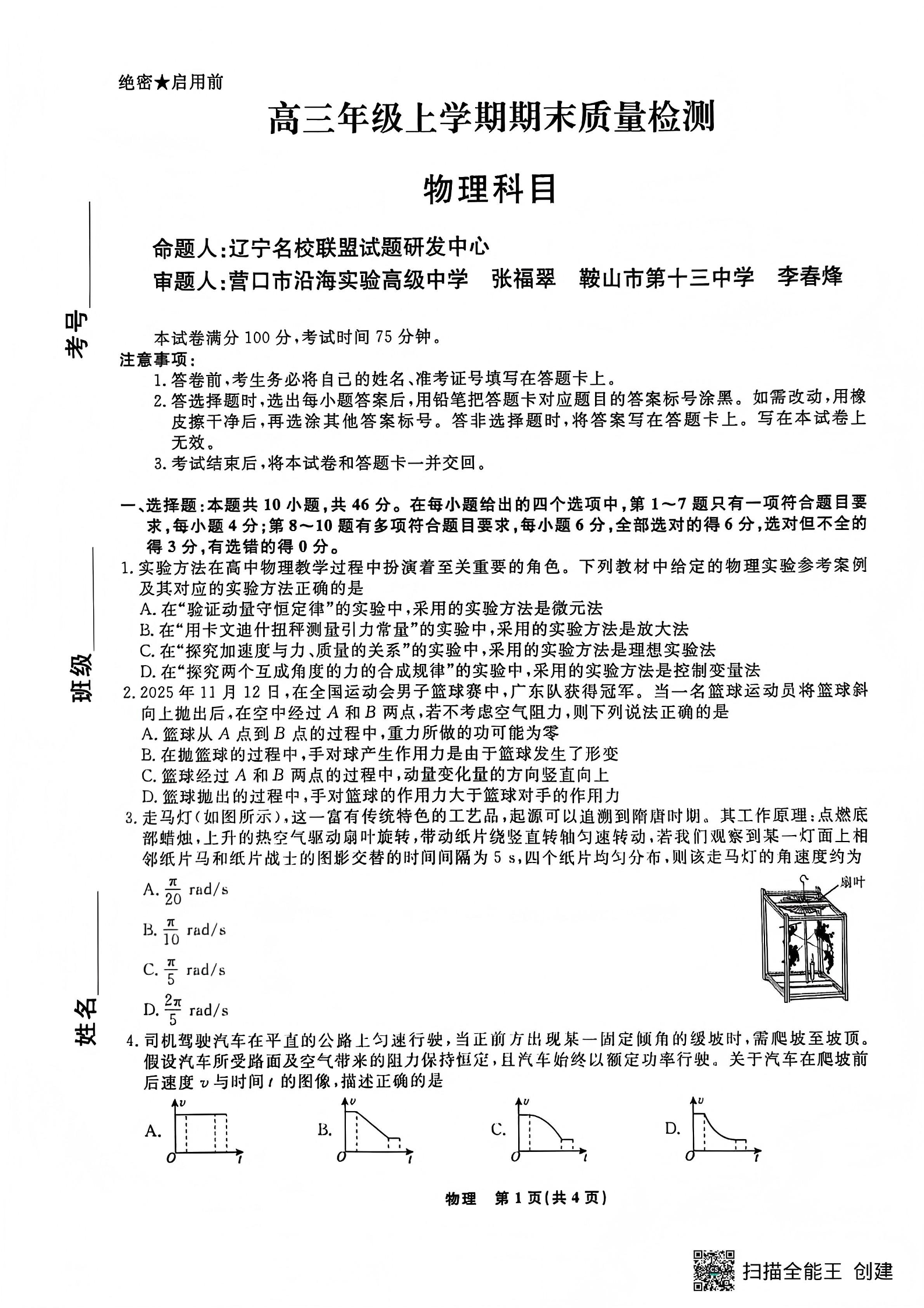 辽宁名校联盟2025-2026学年高三上学期1月期末考试 物理.pdf
