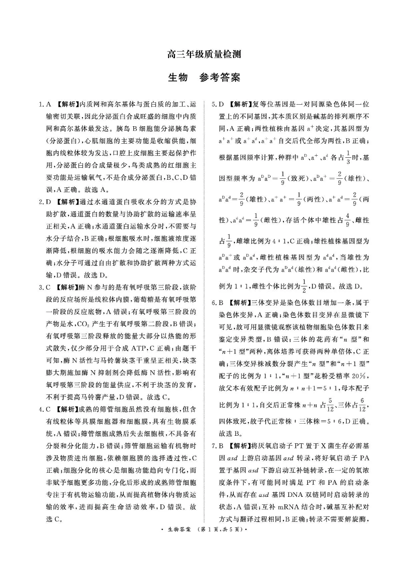 河南省青桐鸣大联考2025-2026学年高三上学期1月月考 生物答案.pdf