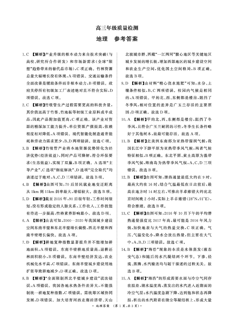 河南省青桐鸣大联考2025-2026学年高三上学期1月月考 地理答案.pdf