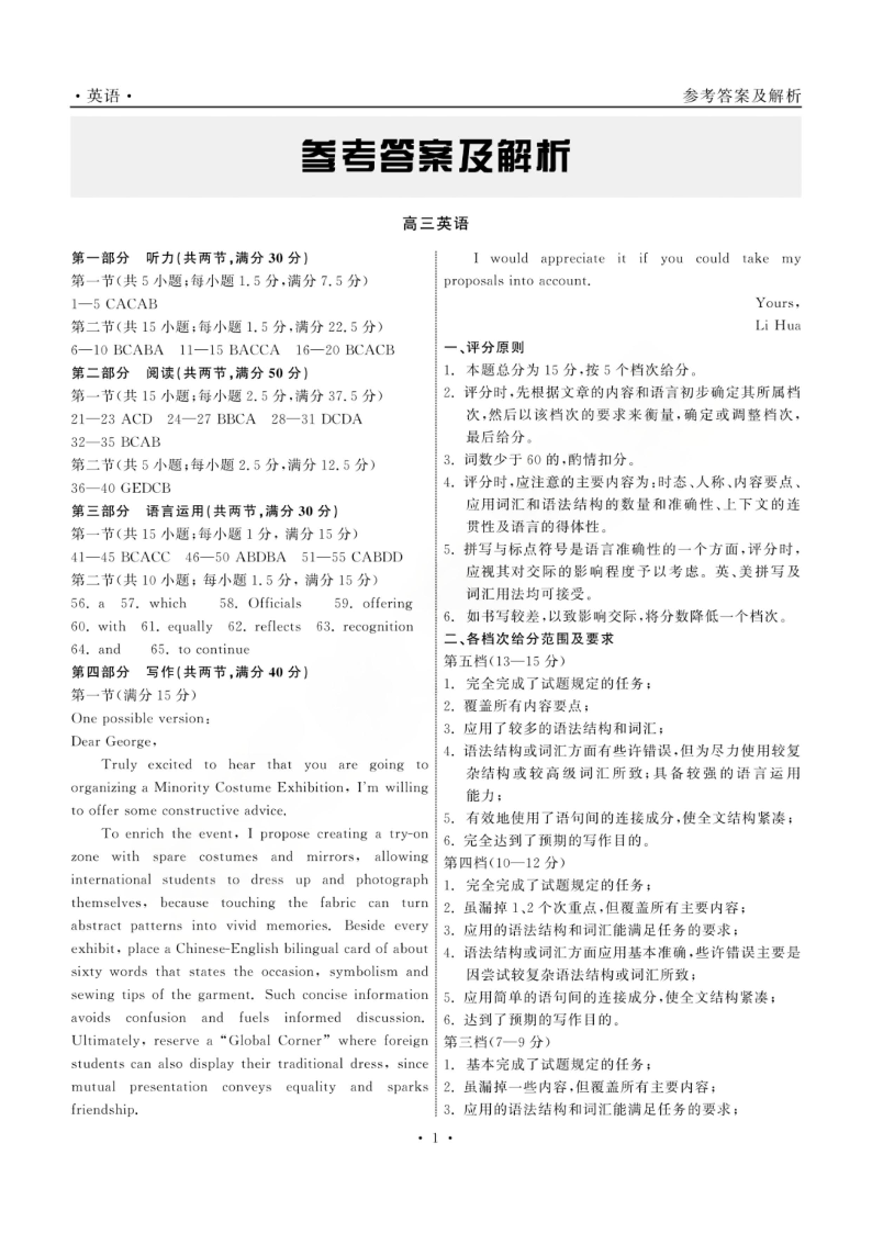 龙江教育联盟2026年1月高三上学期期末考试 英语答案.pdf