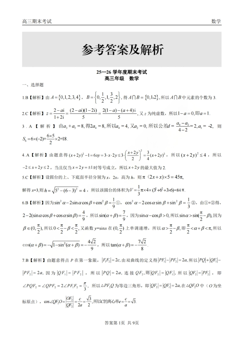 龙江教育联盟2026年1月高三上学期期末考试 数学答案.pdf