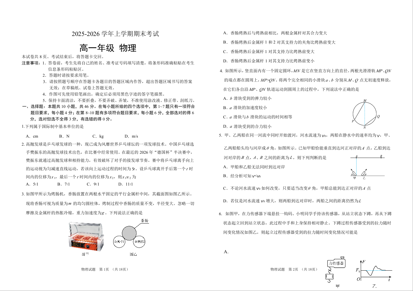 吉林省长春外国语学校2025-2026学年高一上学期期末考试 物理试题(含答案).doc