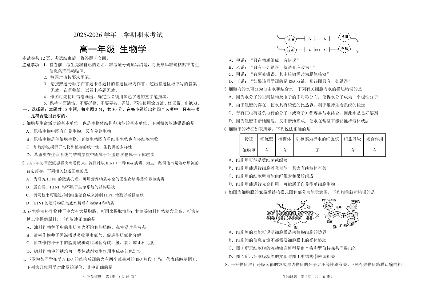 吉林省长春外国语学校2025-2026学年高一上学期期末考试 生物试题(含答案).doc