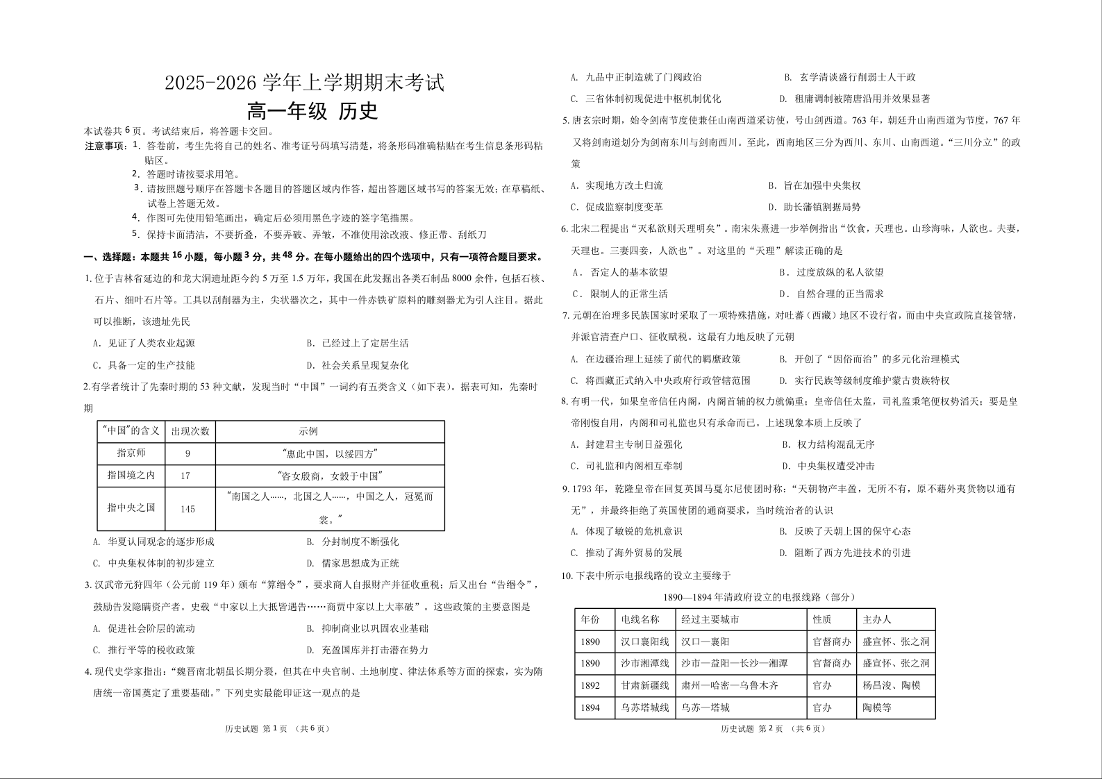 吉林省长春外国语学校2025-2026学年高一上学期期末考试 历史试题(含答案).docx
