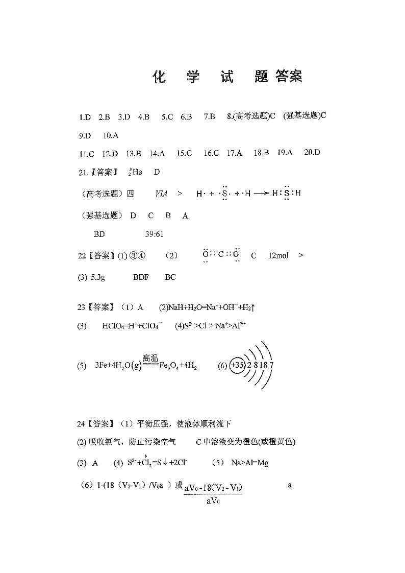长春市十一高中2025-2026学年1月高一上学期第三学程考试 化学答案.pdf