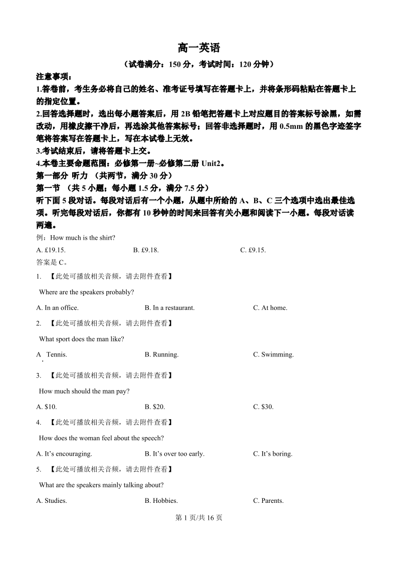 吉林市外五县2025-2026学年高一上学期1月期末考试 英语试题(含答案).pdf