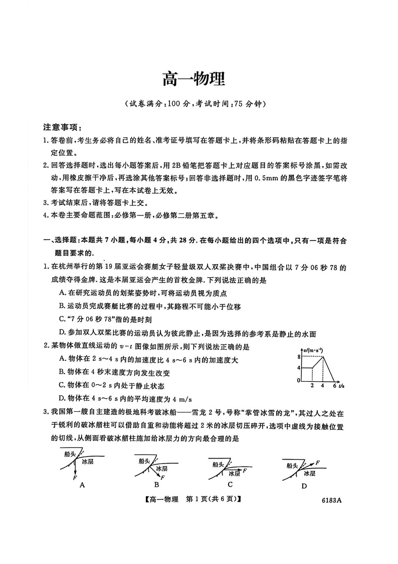 吉林市外五县2025-2026学年高一上学期1月期末考试 物理试题(含答案).pdf