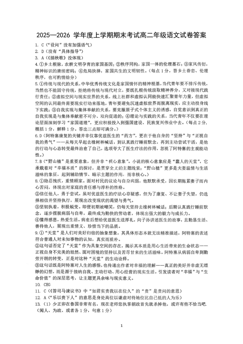辽宁省五校联盟2025-2026学年度上学期2027届高二年级期末考试 语文答案.pdf