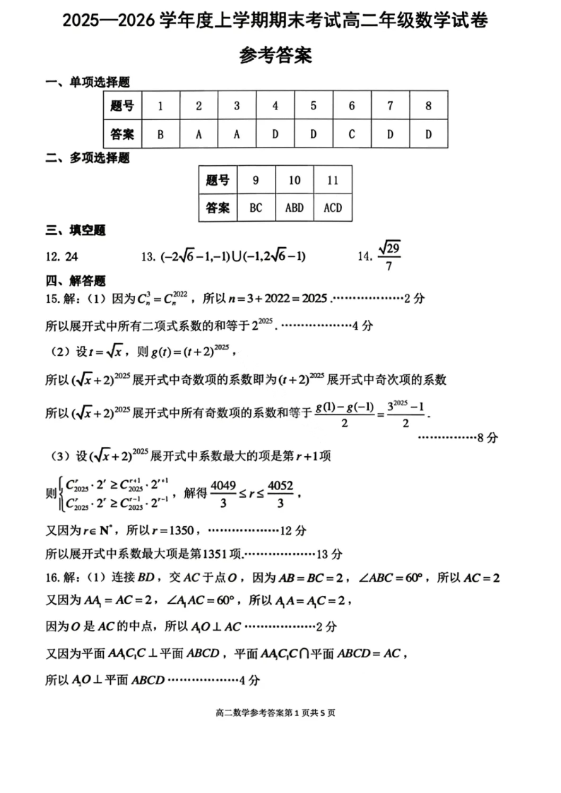 辽宁省五校联盟2025-2026学年度上学期2027届高二年级期末考试 数学答案.pdf