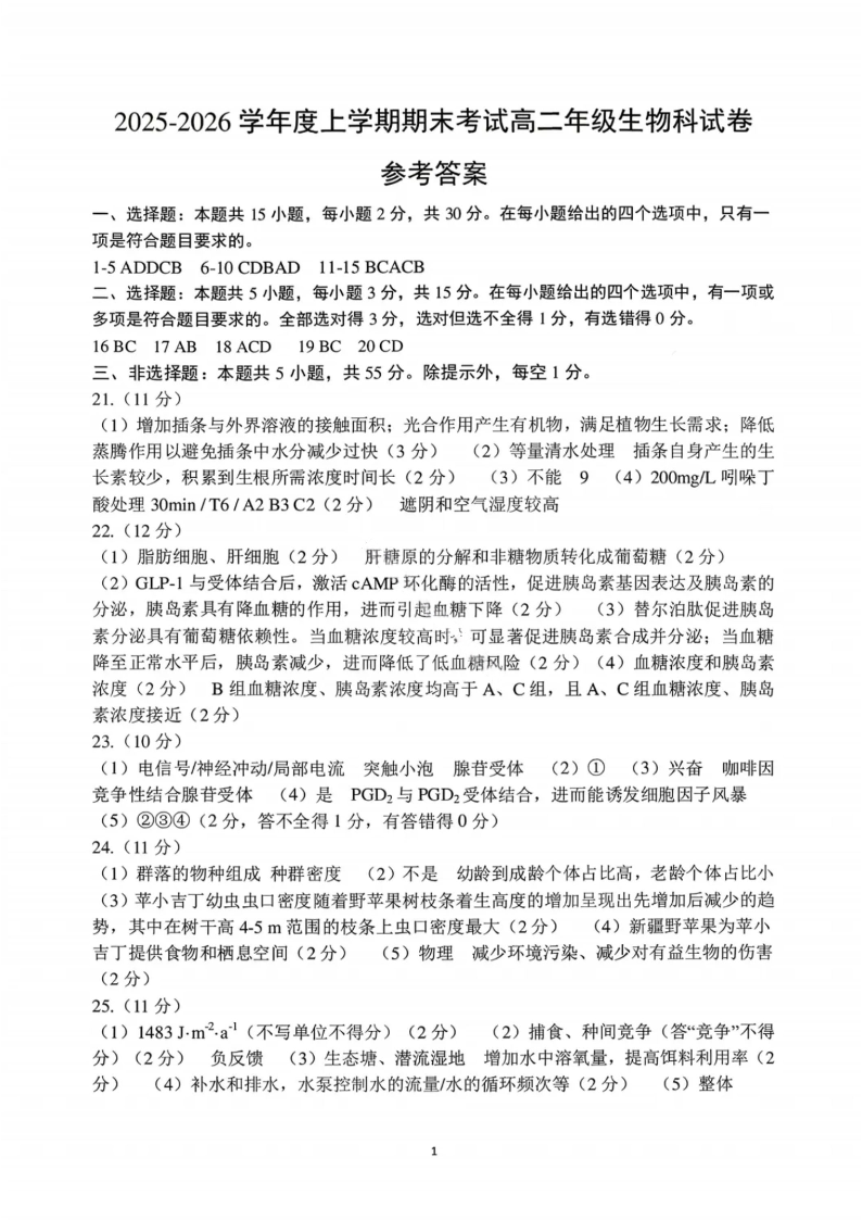 辽宁省五校联盟2025-2026学年度上学期2027届高二年级期末考试 生物答案.pdf