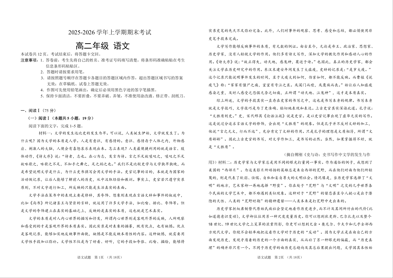 吉林省长春外国语学校2025-2026学年高二上学期期末考试 语文试题(含答案).doc