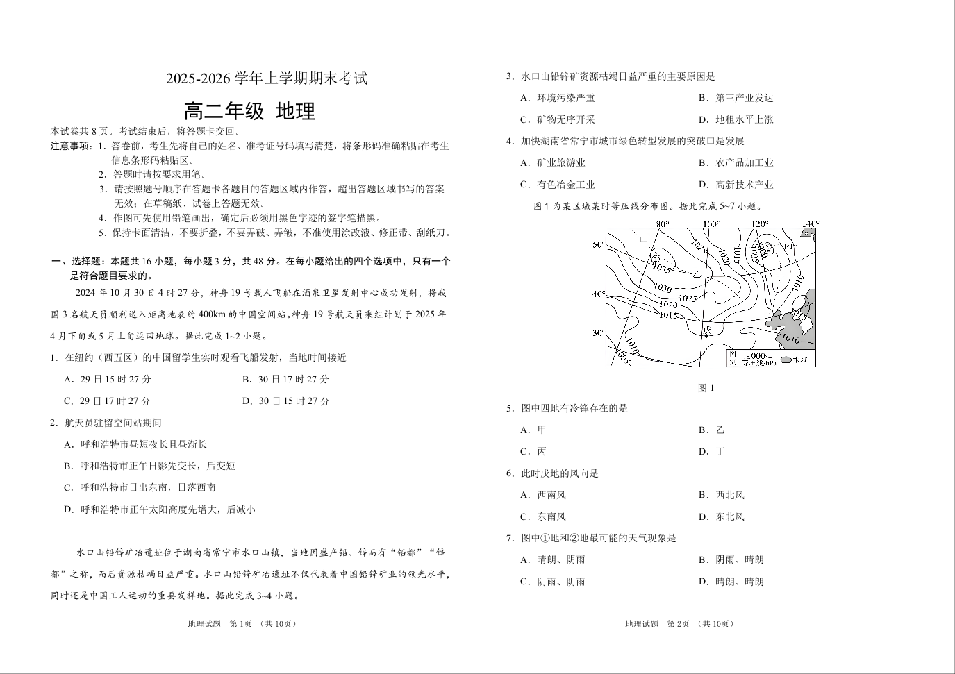 吉林省长春外国语学校2025-2026学年高二上学期期末考试 地理试题(含答案).doc