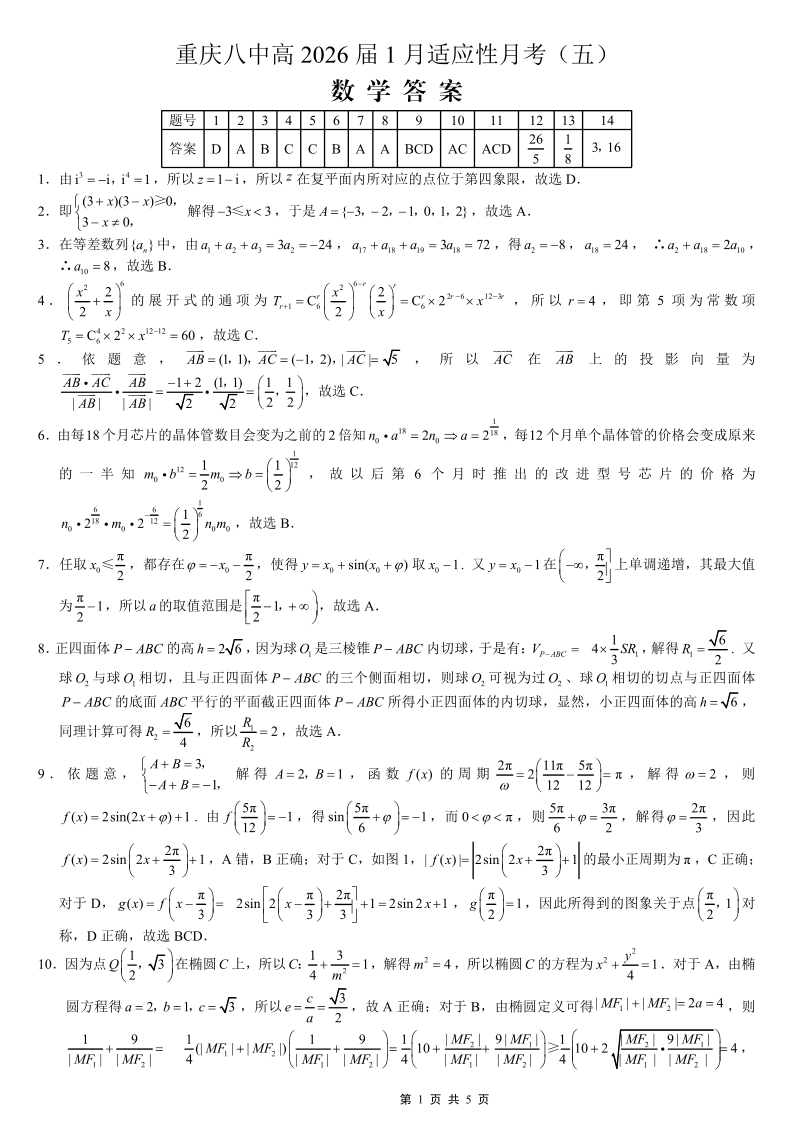 重庆市第八中学2026届高考适应性月考卷(五)数学答案.pdf