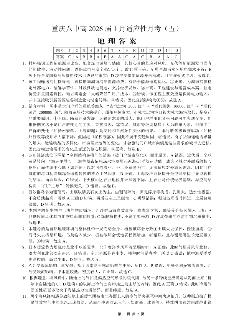 重庆市第八中学2026届高考适应性月考卷(五)地理答案.pdf