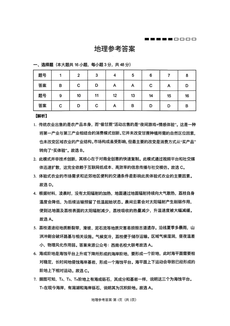 云南师范大学附属中学2026届高三1月高考适应性月考卷(六) 地理答案.pdf