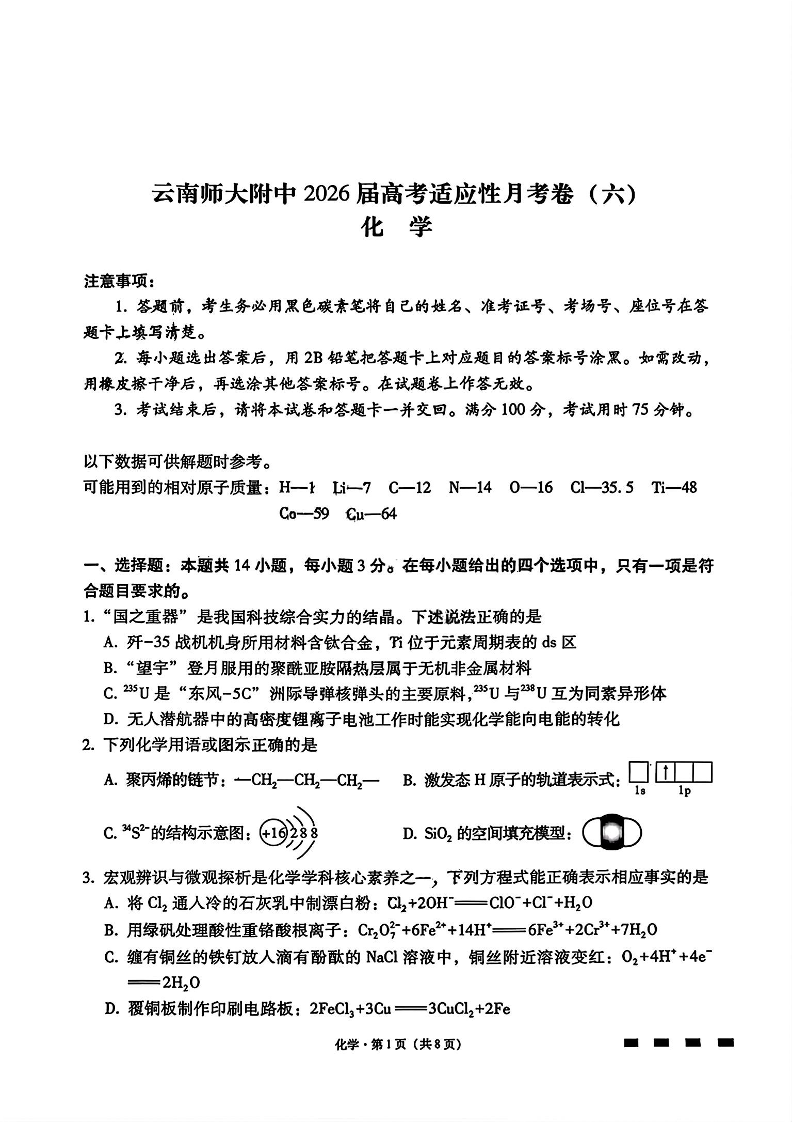云南师大附中2026届高三月考试卷(七)化学.pdf