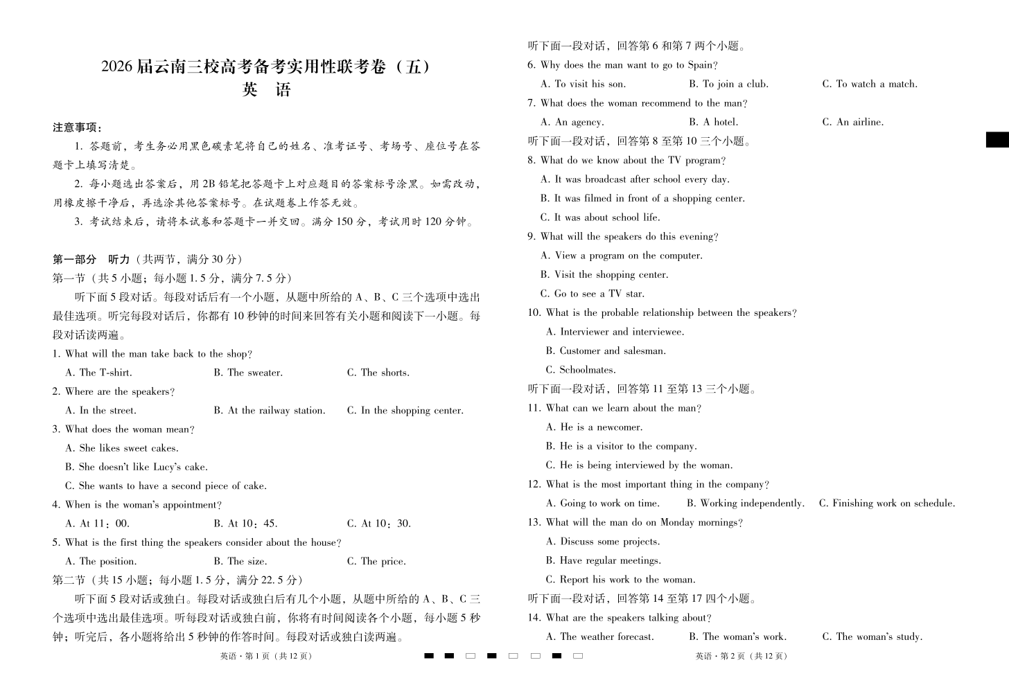 2026届云南三校高考备考实用性联考卷(五)英语.pdf