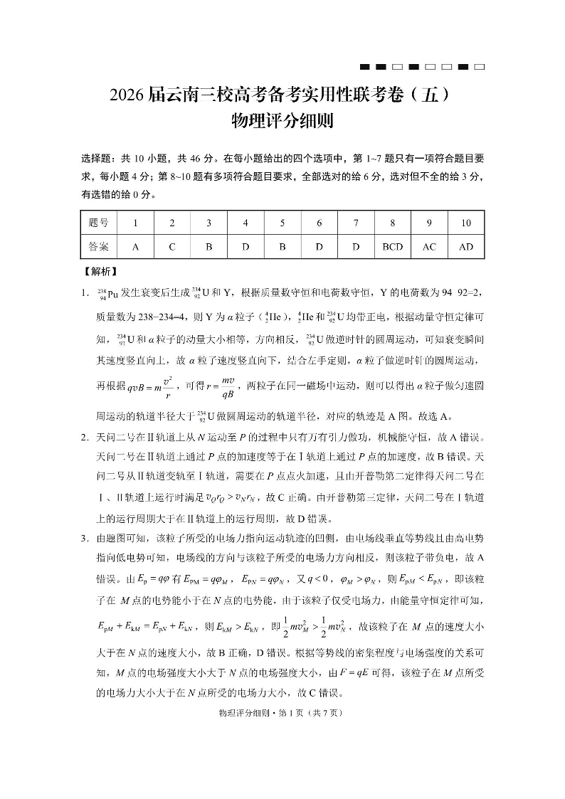 2026届云南三校高考备考实用性联考卷(五)物理答案.pdf