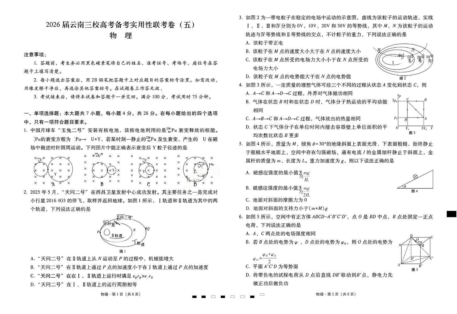 2026届云南三校高考备考实用性联考卷(五)物理.pdf