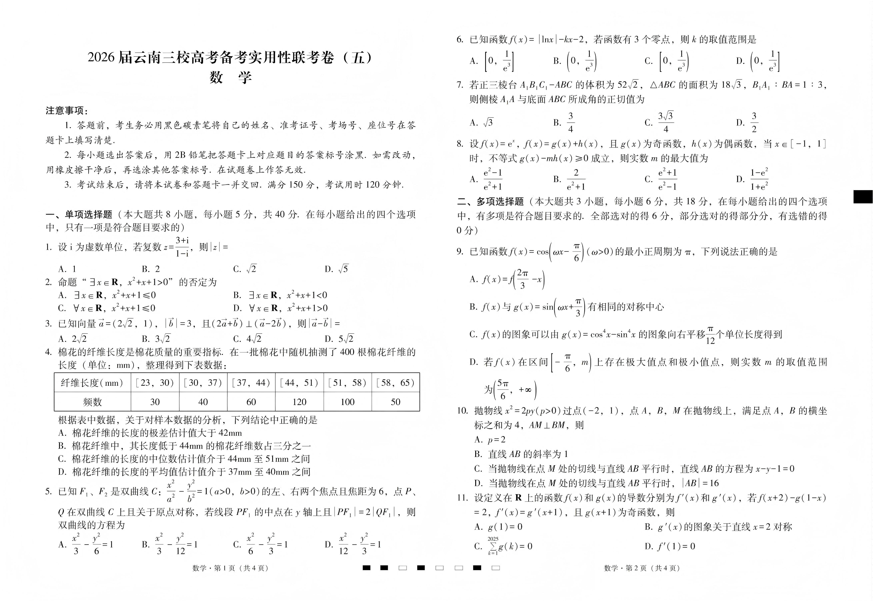 2026届云南三校高考备考实用性联考卷(五)数学.pdf