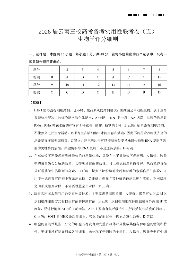 2026届云南三校高考备考实用性联考卷(五)生物答案.pdf