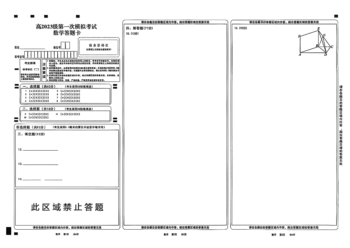 四川省广安市高2023级第一次模拟考试 数学答题卡.pdf