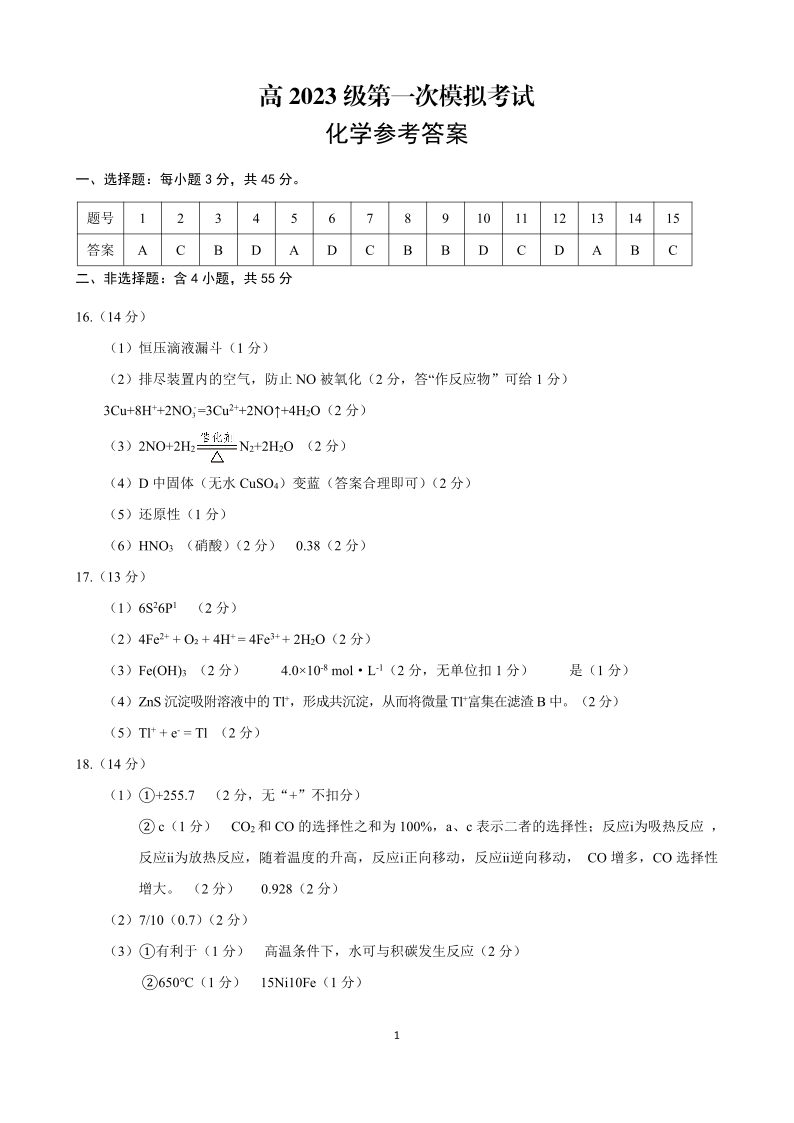 四川省广安市高2023级第一次模拟考试 化学答案.pdf