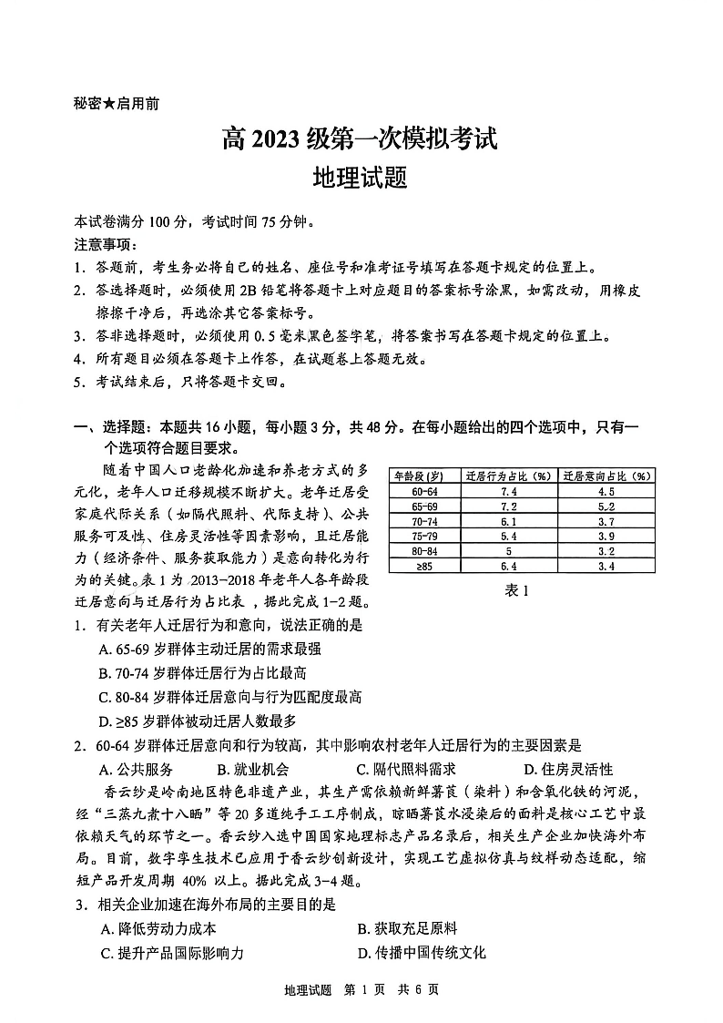 四川省广安市高2023级第一次模拟考试 地理.pdf