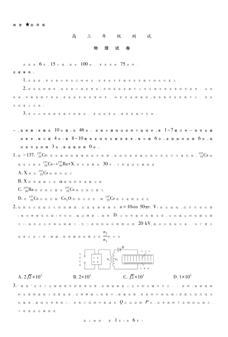 江西省上进联考2025-2026学年上学期1月高三年级测试·物理.pdf