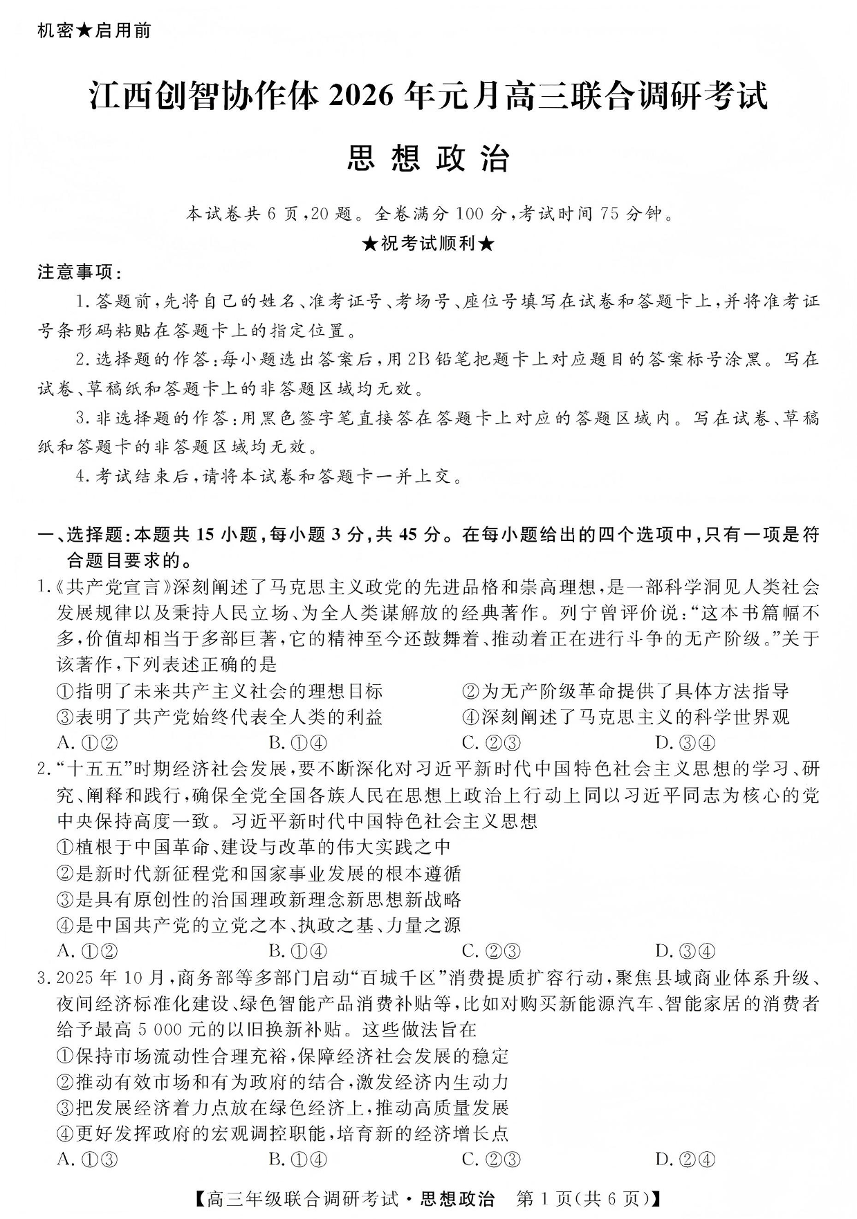 江西创智协作体2026年元月高三联合调研考试 政治.pdf