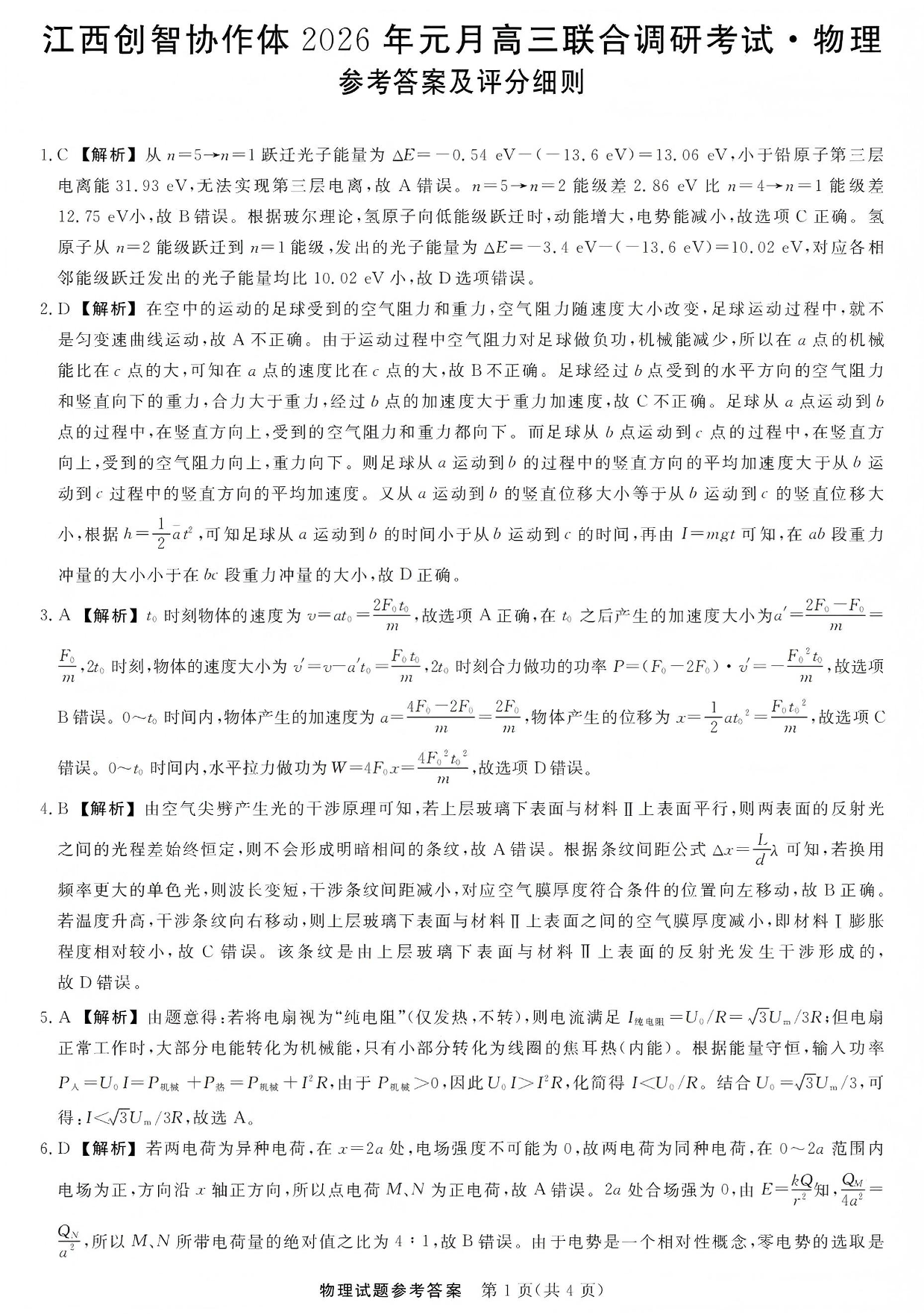 江西创智协作体2026年元月高三联合调研考试 物理答案.pdf